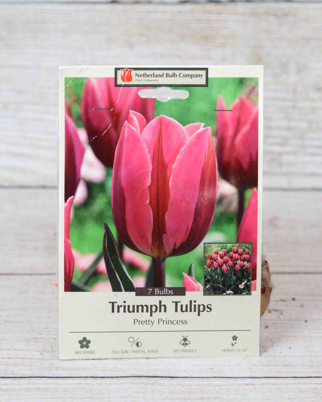 The Pretty Princess tulips produce flowers with pink petals adorned with deep red-purple flames and the occasional orange flair, making them a truly unique and whimsical addition to any garden. They are fairly easy to grow and care for and can be planted in borders, beds, or naturalized areas. Pretty Princess tulips are also a popular choice for cut flowers and making table displays!