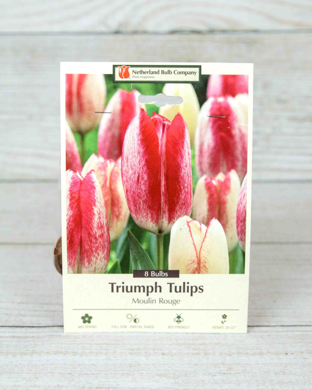 Moulin Rouge Tulips begin with a creamy white hue, adorned with striking raspberry pink accents. Over time, the petals intensify in color, eventually becoming a captivating mix of cherry pink, rose, and crimson.