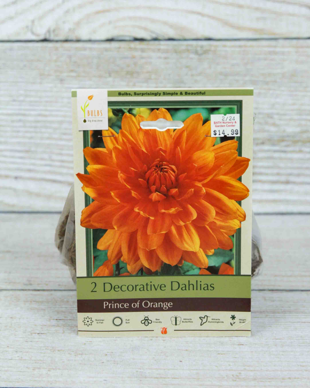 The defining characteristic of 'Prince of Orange' is its abundance of large, 3-5 inch blooms in a glorious shade of orange. This rich, glowing orange hue is reminiscent of a summer sunset and adds a burst of sunshine to any garden. This dahlia is a decorative type, known for its full and impressive blooms. Layers upon layers of flat, slightly rounded petals create a classic, fully double flower form.