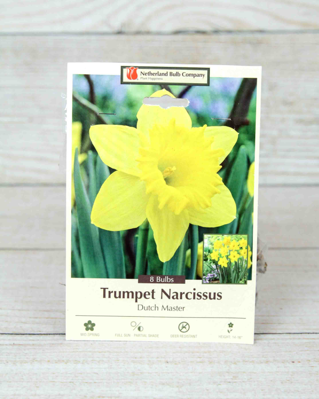 Trumpet Daffodils are known for their traditional daffodil shape; a large flower on one stem with an exceptionally long, large trumpet. Daffodils are easy to grow in well-drained soil in full sun to partial shade and are well known to be deer resistant. A perennial that blooms year after year.