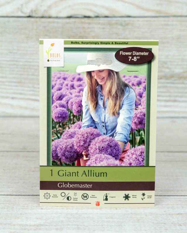 Globemaster is a stunning allium that produces a colossal round cluster of purple flowers that often measure up to 10" in diameter. Alliums are deer resistant and easy to grow in well-drained soil in full sun to partial shade. Water well after planting. Great ornamental value in the landscape and amazing cut or dried flowers. Plant allium in the fall for spring blooming bulbs.