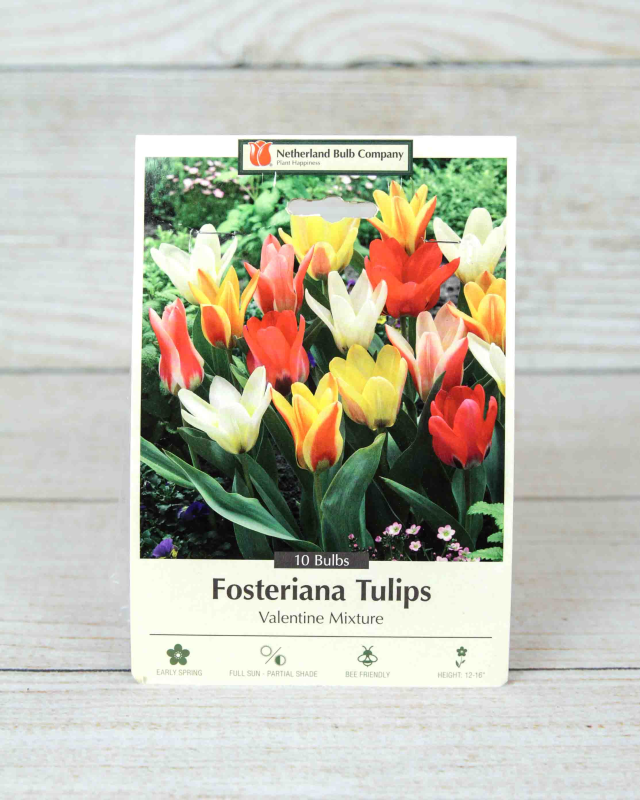 The Fosteriana Valentine Tulip Mixture is a captivating blend of early-blooming tulips known for their large, vibrant flowers. These tulips boast a stunning array of colors, ranging from deep reds and rich purples to cheerful pinks and sunny yellows. Plant these bulbs in the fall for spring blooming tulips.