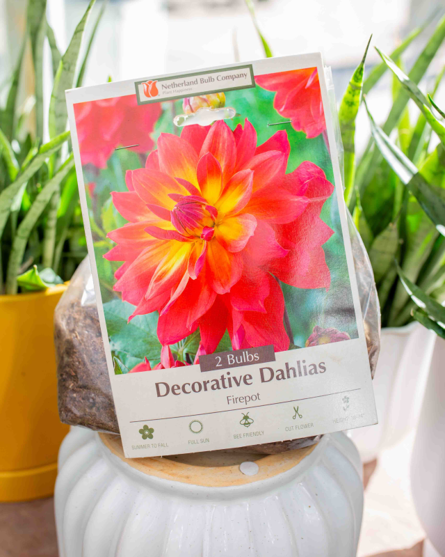 The Firepot Decorative Dahlia is widely celebrated for its intense, "sunset-inspired" gradient. Unlike some taller varieties, Firepot is prized for its compact habit and neon-bright coloration that commands attention even from a distance. The blooms are a masterclass in warm tones. Each petal starts with a glowing yellow center that radiates outward into a vivid orange-coral, finally tipped with a deep raspberry-pink.
