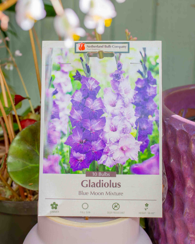 The Blue Moon Mixture Gladiolus is curated to bring a cool, tranquil elegance to the summer garden. This blend features a gradient of "cool" tones, typically including deep velvet purples, soft lilac/lavender, and crisp, snowy whites. When planted together, they create a cohesive, "moonlit" aesthetic that looks particularly stunning in the early morning or twilight hours.