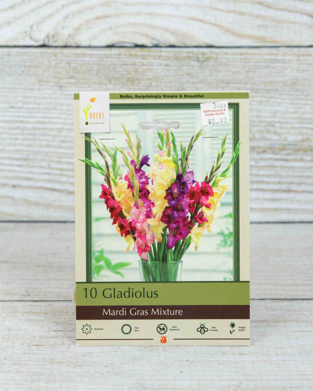 This mix features blooms in shades of purple, pink, and blush, reminiscent of the celebratory Mardi Gras palette. Imagine a stunning display of these colors swaying in the summer breeze! The tall, sturdy stems and large blooms make Mardi Gras gladiolus excellent for cut flower arrangements. Bring the party indoors with these beauties in a vase!