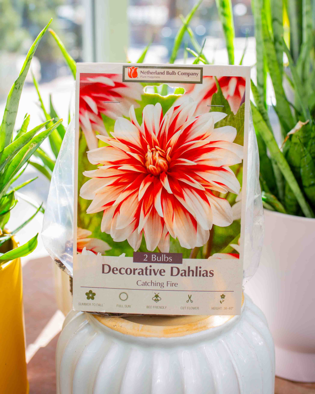 The Catching Fire Dahlia features a dramatic "bicolor" pattern. The base of each petal is a deep, velvety crimson red, which terminates in a sharp, snowy white tip. The contrast is exceptionally crisp, making each bloom pop against green garden foliage. It produces medium-to-large flowers, typically ranging from 4 to 6 inches in diameter.