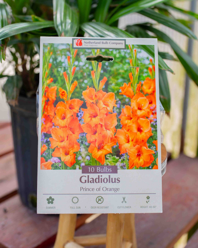 The 'Prince of Orange' Gladiolus is a standout cultivar known for its high-octane color and regal stature. Named appropriately for its fiery, citrus-toned blooms, it brings a dramatic Mediterranean feel to any summer garden.