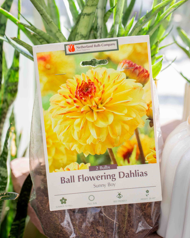 The Sunny Boy Ball Flowering Dahlia is loved for its geometric perfection and high-contrast center, it is a consistent performer that brings a literal ray of sunshine to any summer landscape. The blooms feature a bright, golden-yellow base with a distinct warm orange or red-tinged center. This "bi-color" effect gives the flower depth and makes it appear to glow from within.