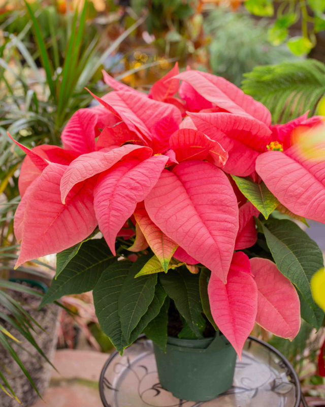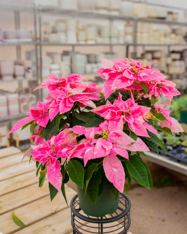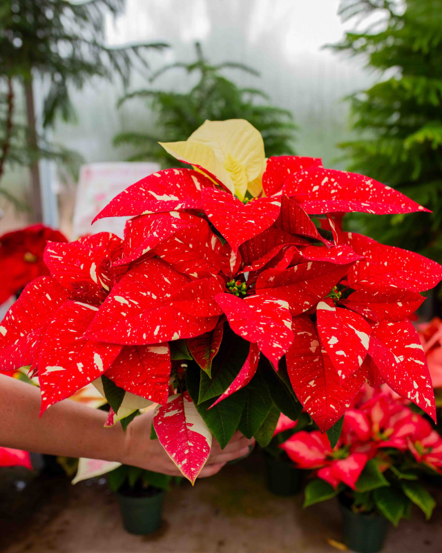 Poinsettias are sub-tropical, flowering shrubs that are a beloved classic during the holiday season. They make a beautiful addition to any home's dรฉcor with their vibrant greens, reds, creams, pinks, and various other colors and color combinations. At Bath Garden Center, you'll find an assortment of poinsettias waiting to find their new home with you!