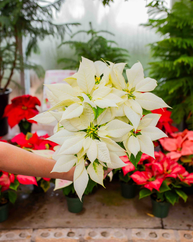 *Our inventory is constantly fluctuating, and due to the nature of the industry, available Poinsettia varieties are constantly changing. The pictured Poinsettias are ones we commonly carry; however, we cannot guarantee that a specific variety will be in stock. Shop with us in-store today or give us a call to learn about specific plants on hand!