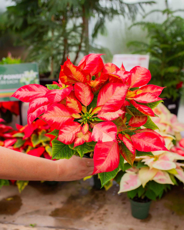 Poinsettias are sub-tropical, flowering shrubs that are a beloved classic during the holiday season. They make a beautiful addition to any home's décor with their vibrant greens, reds, creams, pinks, and various other colors and color combinations. At Bath Garden Center, you'll find an assortment of poinsettias waiting to find their new home with you!