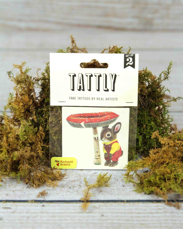 Channel your inner bunny with Richard Scarry's adorable Toadstool Bunny temporary tattoos! Featuring Nicholas the bunny from the beloved children's book "I Am A Bunny," this Tattly design captures the classic Richard Scarry charm.