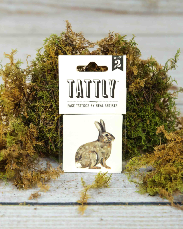 Spruce up your look with Tattly's adorable bunny rabbit temporary tattoos! This set includes two identical tattoos designed by artist Kelsey Oseid. The simple and charming design features a small bunny rabbit. Tattly tattoos are safe and printed with vegetable-based ink, lasting on average 2-4 days.