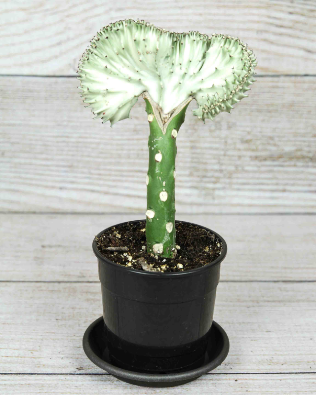 The "Mermaid Tail Cactus" isn't a cactus! It's a succulent (Euphorbia Lactea) and the defining feature is its "mermaid tail" shape. This isn't a natural form but the result of a grafting technique. The Euphorbia Lactea stem is stimulated to grow in a flattened, wavy pattern, resembling the flowing fins of a mermaid. Colors range from green to blue-green, and it grows slowly in clusters. This plant has sap that can irritate skin and eyes, so wear gloves when handling and keep away from pets and children.