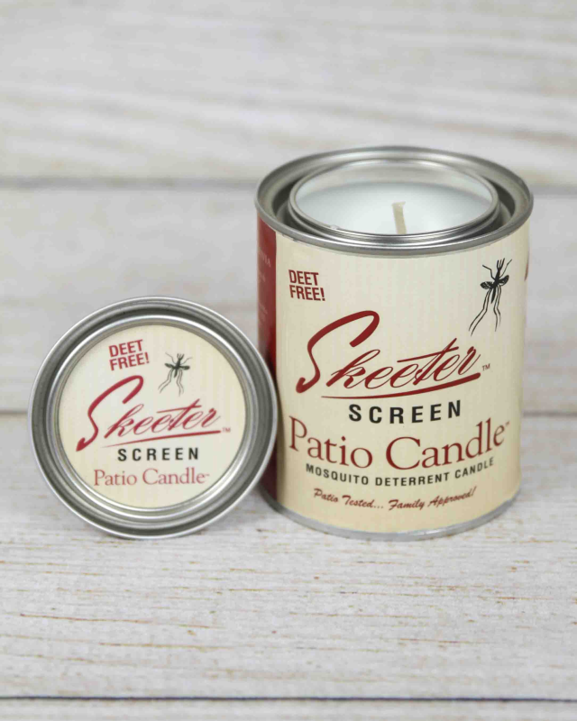Having a party or just want to relax outdoors with your favorite beverage and enjoy the sights and sounds of nature? Well, the Skeeter Screen Patio Candle will help deter the one sound you don't want to hear, the high-pitched whine of a hungry mosquito. The Skeeter Screen Scents of Nature essential oil formula will help create a "no fly zone" in your private corner of the world.