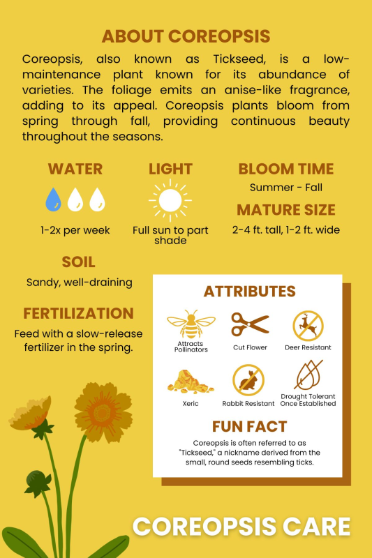 The fluted petals, compact habit, and long bloom time make this Coreopsis a great performer. Coreopsis is easy to grow, making it a good choice for beginners.