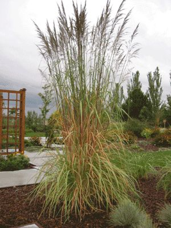 The Hardy Pampas grass is a gigantic species that has a superb upright, arching habit. The foliage turns shades of orange, tan, beige, and purple in the fall. The feathery plumes appear in late summer. An attractive garden focal point!