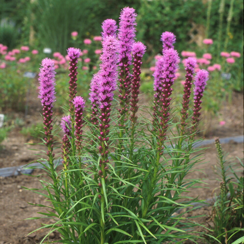Bright, rosy lavender flower wands open from top to bottom in early summer, appearing to glow at the tips. Narrow, opposite leaves are up to 10 inches long at the base of the plant and decrease in length up the stems.