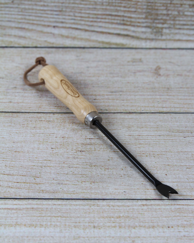 The Garden Weeder Tool will help to break through and loosen hardened soil and prepare your garden for seeding. The wooden handle supports the hand and wrist and includes a convenient leather strap for hanging.