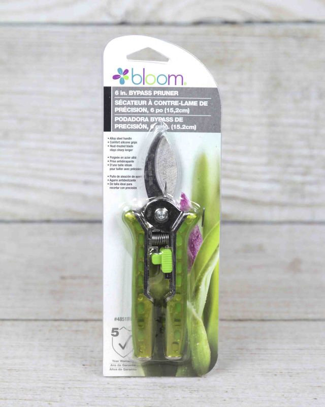 The Bond Bloom Bypass Pruner is a precision tool designed for clean and efficient pruning of small branches and stems. Its bypass design, where two sharp blades slide past each other, ensures a clean cut that minimizes damage to the plant. It features an alloy steel handle, comfortable silicone grips, and a heat-treated blade that stays sharp longer.