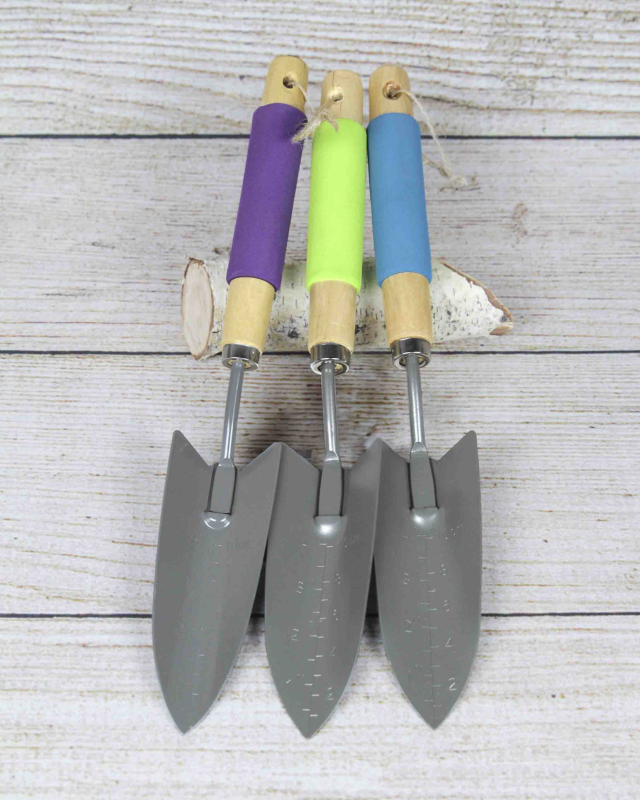 The Bond Bloom Transplanter shovel is a versatile gardening tool designed for efficient and precise transplanting of seedlings and small plants. The shovel's narrow blade is ideal for digging up plants without damaging their roots. Choose between a blue, green, or purple foam handle.