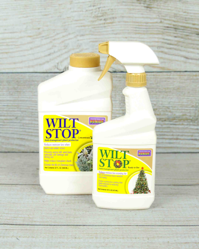 Protects plants from drying out, drought, wind burn, sunscald, winter kill, transplant shock and salt damage. Wilt Stop also extends the life of cut flowers. Great for use year-round on deciduous trees, evergreens, shrubs, roses, transplants, vegetables, fruits.