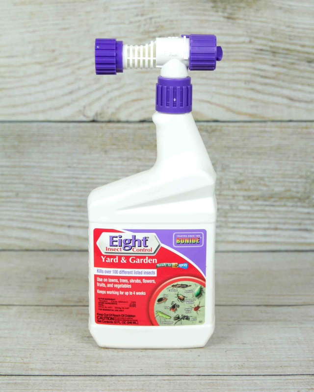 Bonide Eight Yard and Garden controls over 100 insects/pests including species of ant, cricket, spider, flea, tick, mite, moth, caterpillar, beetle, gnat, fly, chinch bug, & more. This bug defense is great for use on listed lawns, trees, shrubs, flowers, fruits, nuts, vegetables, outside surfaces of buildings, sidewalks, patios, porches, & more.