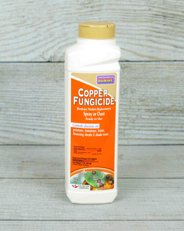 This ready-to-use spray or dust controls diseases on a variety of plants in your garden including potatoes, tomatoes, fruits, vegetables, herbs, flowering shrubs, shade trees and more. Copper Fungicide works to control many common garden diseases including powdery mildew, downy mildew, black spot, early blight, leaf curl and other listed diseases. Great for blight!