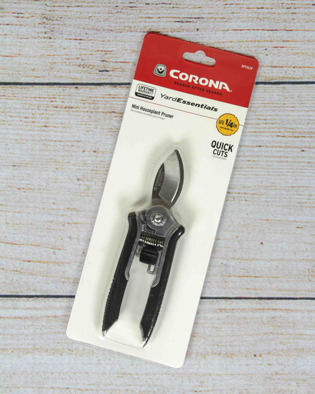 Corona Mini Houseplant Pruners are small shears designed for precise pruning and trimming of houseplants. They are ideal for maneuvering in tight spaces around houseplants. The narrow profile of the blades allows for clean cuts on small stems and delicate flowers of houseplants like orchids and succulents.