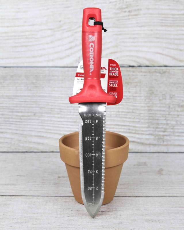 The Corona Brand Hori Hori Garden Knife is a highly versatile and popular gardening tool, known for its multifunctional capabilities. It typically features a sturdy, stainless steel blade with both a sharp edge and a serrated edge, allowing for tasks like digging, cutting, weeding, and transplanting. A key feature is often the inclusion of depth markings on the blade, which aid in precise planting.