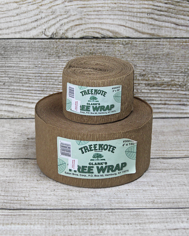 Paper tree wrap protects young trees from severe frost, windburn, lawn trimmers, and rodents.