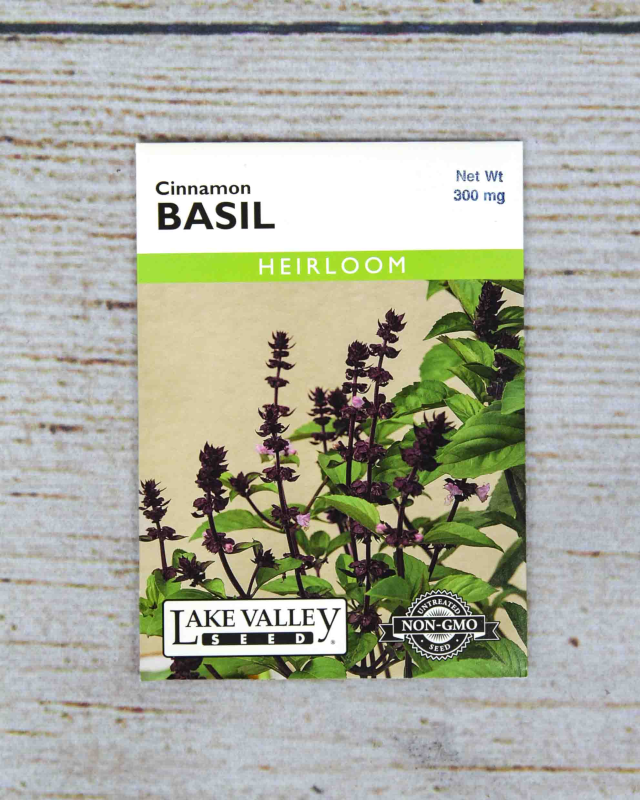 A tasty variation on sweet basil, with a tempting cinnamon scent and flavor. Easy to grow. Use with fish, cold summer soup and fruit salad. Grow with lemon basil and anise basil for a complete range of basil flavors.