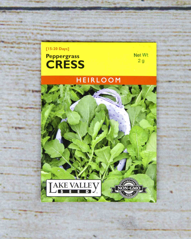 Peppergrass cress has small, round, or lobed leaves that are arranged in a rosette at the base of the plant. The leaves are a deep green color and have a peppery flavor. Cress is easy and quick to grow. Clean, tangy flavor to add zing to your salads, sandwiches, and garnishes. Thrives in any garden and in a bright window for winter greens.