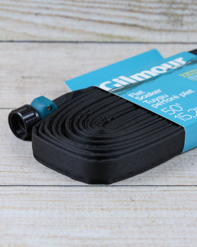 This flexible soaker hose gets water right where you want it: at the roots. Water seeps out of all sides of the fabric jacket and directly into the soil, for waste-free watering in garden beds and other tight spaces. The flat design makes it a breeze to roll up and store for next season. Made of perforated PVC liner covered in fabric, this flexible design allows for easy maneuvering. Target the roots and save water!