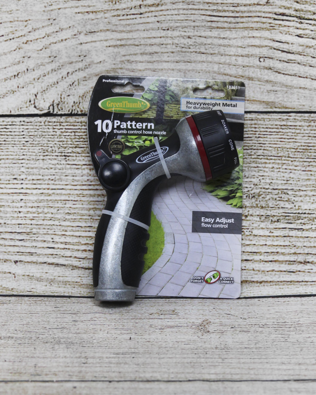 GreenThumb's 10-Pattern Metal Nozzle Sprayer is a versatile watering tool designed to meet all your watering needs. With its durable metal construction and 10 different spray patterns, this sprayer offers exceptional versatility and durability. Whether you need a gentle mist for delicate plants or a powerful jet for cleaning tasks, this nozzle has you covered. The 10 spray patterns include options like shower, cone, flat, center, and jet, allowing you to customize the water flow to suit different plants and tasks.