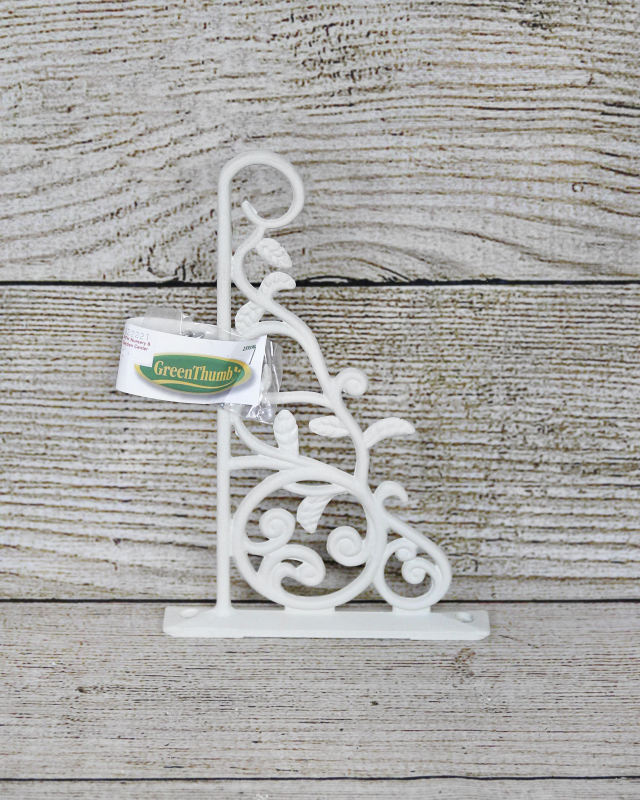 The Green Thumb White Hanging Plant Bracket with Leaves is a great way to add a touch of greenery to your home or garden. It's made of durable cast aluminum and is rust-resistant. The white finish is classic and elegant, and the faux leaves add a touch of whimsy. It is durable, stylish, and easy to install. Whether you are hanging a small succulent or a large vine plant, this bracket can handle it.