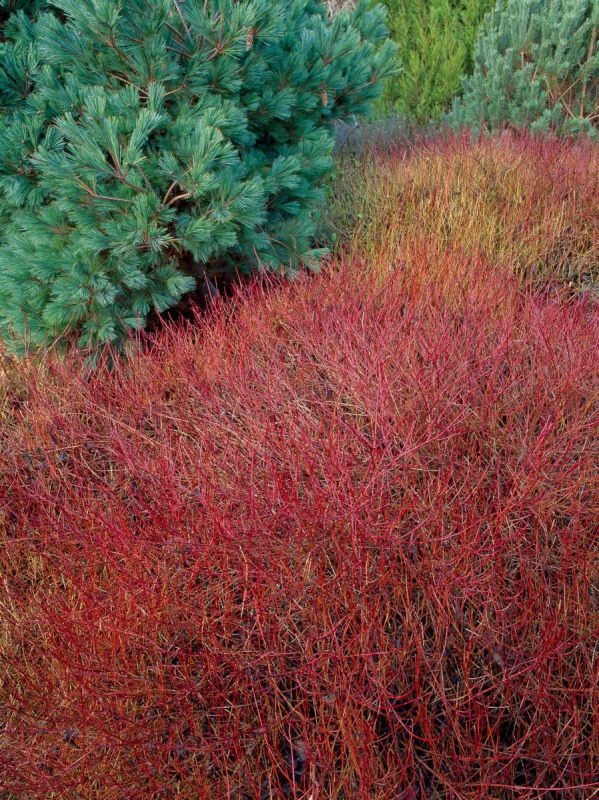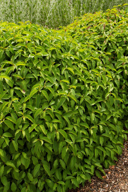 Kelsey's Dwarf Dogwood (Cornus sericea 'Kelseyi') is a compact shrub that's a great choice for adding year-round interest to your landscape. This dwarf form is well suited as a facing shrub to hide the base of larger shrubs as well as for mass plantings. Boasts white flowers in late spring/ early summer and bare red stems provide valuable winter color.