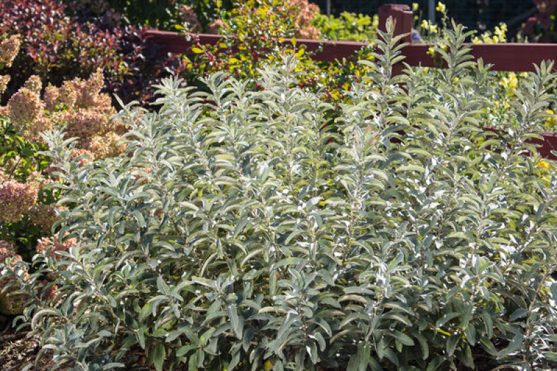 This Sageleaf Willow shrub has powdery, silver foliage and is a great addition to the landscape, adding texture and contrast when combined with other shrubs. It forms a rounded shape and does not overtake the landscape, reaching a height and spread of about 5-6 feet. It blooms in spring with silver catkins, red stamens, and nectar for pollinators. Iceberg Alley is tolerant of moist soils and a great choice for rain gardens.