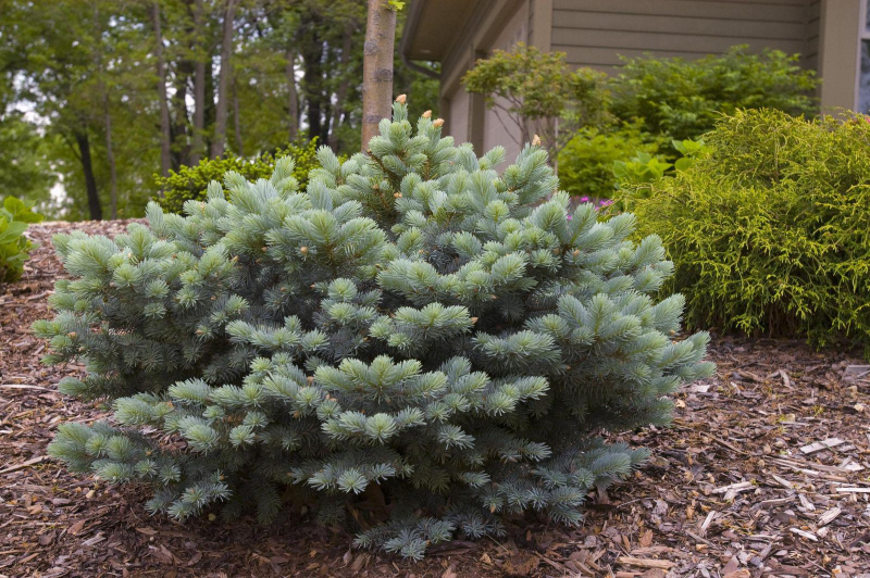 Compact, rounded to mound shaped with beautiful blue foliage. Valuable as an accent or specimen plant. Moderately xeric and slow growth. Prune to keep its shape.