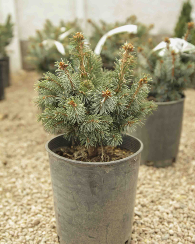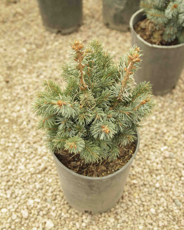 The name Picea sitchensis ‘Silberzwerg’ refers to the plant’s outstanding needle color and its reliable, slow-growing habit. The plant’s very dense, very blue needles display a unique reversal from the norm: the two-tone, blue-green effect results from silvery blue on one side of needles with dark green on the reverses. Resists browsing deer.