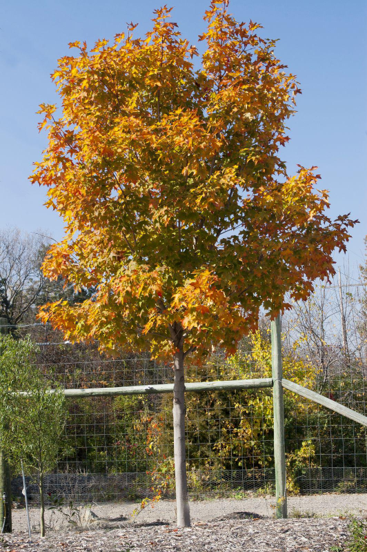 One look is all you'll need to see that Fall Fiesta is superior to the sort. The branching is full and symmetrical. Leathery, glossy, deep green leaves are resistant to leaf tatter and leafhopper damage. A rapid grower, easy to transplant and also resistant to sun scald and frost cracks. Outstanding fall color, shows far more oranges and reds than other sugar maples. Prefers a moist yet well-drained soil with a slight acidity for optimum growth.