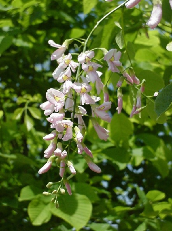 The Perkins Pink Yellowwood is a beautiful flowering tree that is a cultivar of the American Yellowwood (Cladrastis kentukea). It's a medium-sized, deciduous tree that typically grows 30-50 feet tall with upright branching and a broad, rounded crown. Unlike the American Yellowwood which has white flowers, the Perkins Pink Yellowwood boasts fragrant, pale pink blooms that dangle from the branches in late spring.