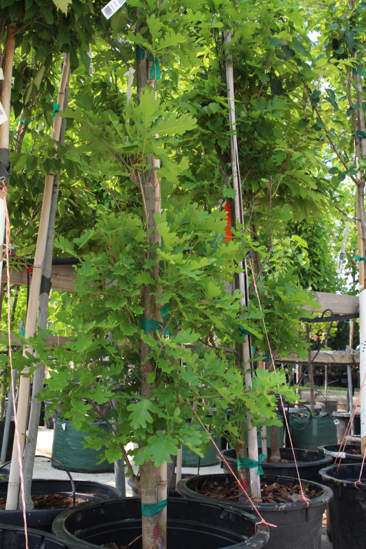 The Scarlet Letter Oak Tree (Quercus robur 'Scarlet Letter') is a new columnar variety, perfect for row screening or vertical accenting and relatively fast growing. Its sturdy branches are resistant to wind and snow damage. Tolerant of poor soil conditions and prolonged heat, as well as drought tolerant and cold hardy once established. Annual iron feedings help ensure overall health and dramatic fall color.