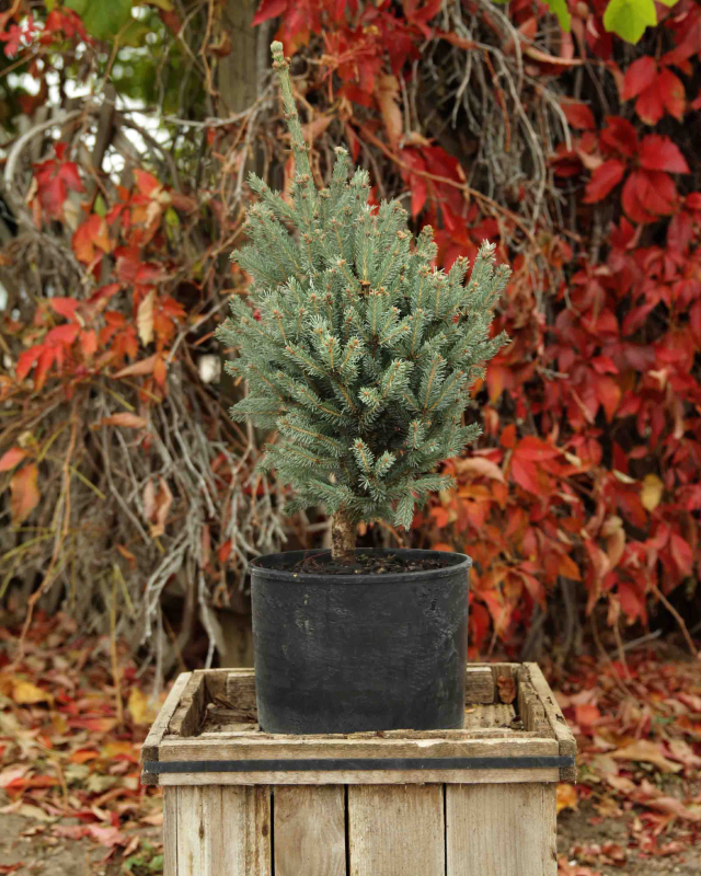 Great for small spaces and later on adding to your garden for a medium to full size Spruce tree. The Yukon Blue White Spruce has short blue-gray needles contrasted against tawny stems. The short needles expose its dark brown buds. Perfect for cold areas where a slow-growing tree with a broad upright habit is needed. The perfect indoor our outdoor Christmas tree!