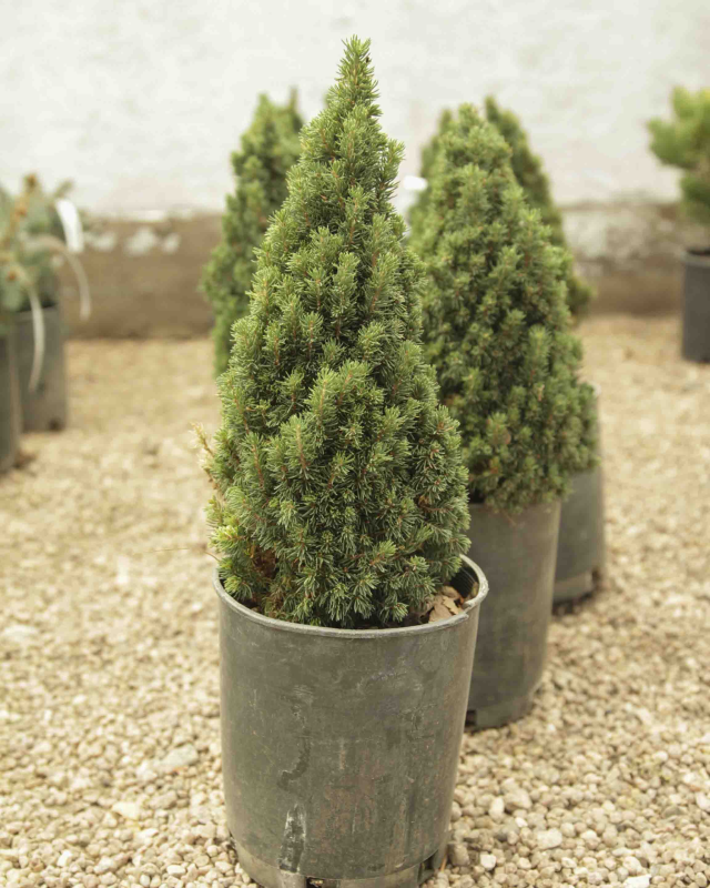 Extremely dense, compact and slow growing, the miniature selection, Picea glauca ‘Pixie Dust’, resembles P.g. ‘Conica’ in form, but offers a special feature. When the second flush of growth emerges in summer, the new tips are yellow, a surprising effect that contrasts dramatically with the deep green, mature foliage. Chosen by the American Conifer Society as 2006 Collector’s Conifer of the Year, this adaptable cultivar produces a magical effect in trough, container or rock garden. Provide ample moisture and full sun for the best color on this sport of ‘Pixie’ that was discovered at Iseli Nursery.