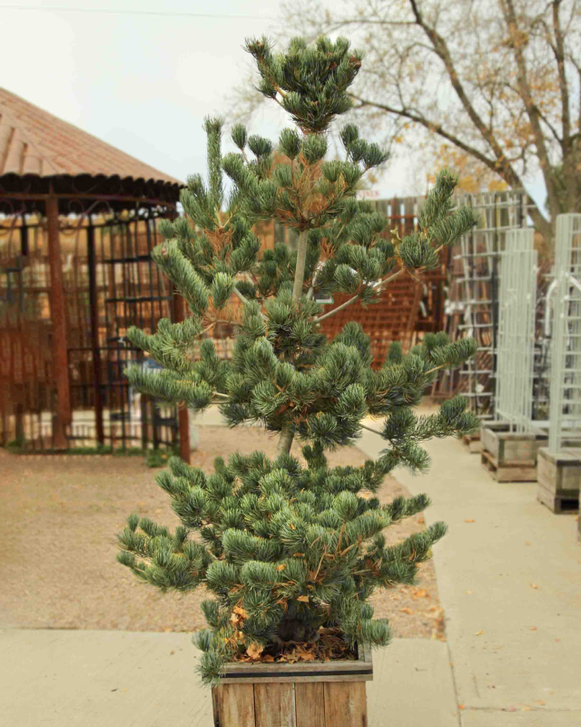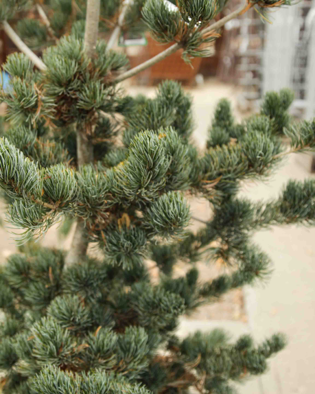 The Japanese White Pine (Pinus parviflora 'Glauca Breviflolia') has a form with needles shorter and more up-curved than Pinus parciflora 'Glauca'. This pine has a similar open habit and numerous persistent cones. A very showy tree with a unique form that is great for decorating during the holidays.