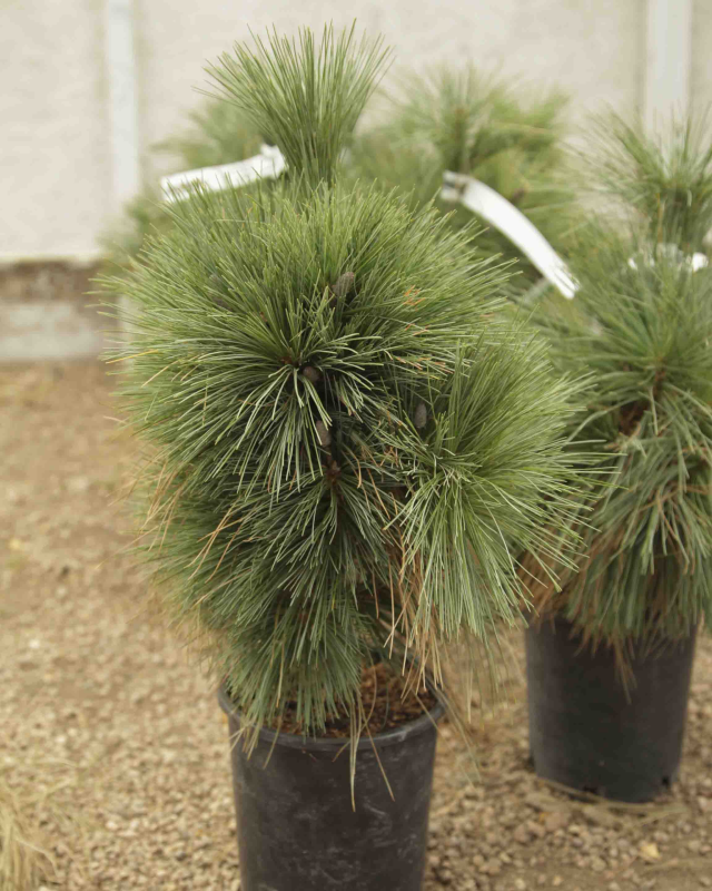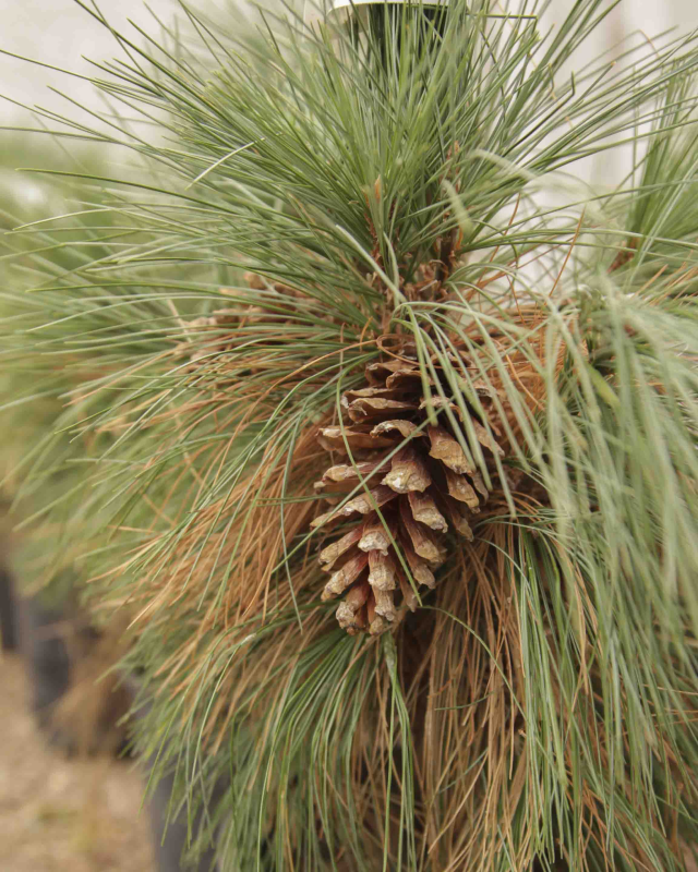Loads of long, super-fine, two-color needles produce an airy, delicate quality, while a profusion of handsome, resinous cones adds to the presence of the large, graceful Pinus x schwerinii ‘Wiethorst’. Discovered in Germany as a witch’s broom on Pinus x schwerinii, a pine hybrid combining strobus and wallichiana, it gets hardiness from the Eastern White Pine and grace and extremely long needles from the Himalayan White Pine. The outstanding, hardy tree will form a dramatic background or add an outstanding accent to the large landscape.