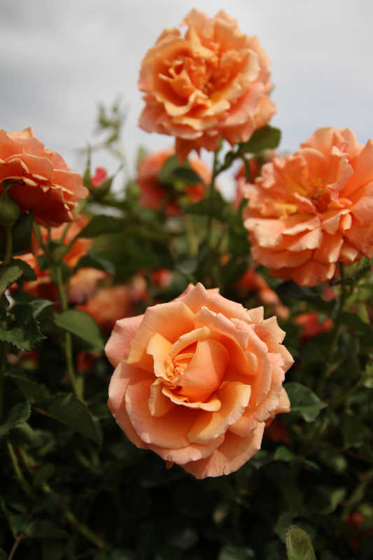 Medium-large, double flowers are apricot with a moderate fragrance. This rose is medium and rounded with glossy green foliage.