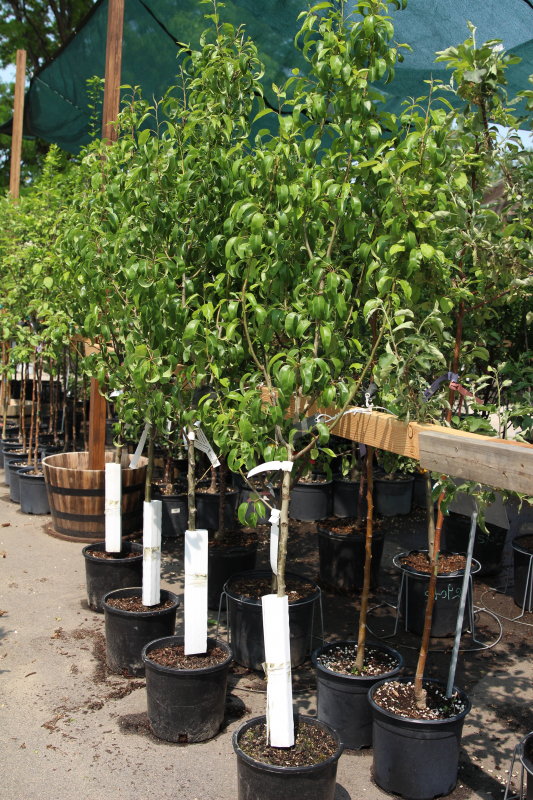 D'Anjou pear trees (Pyrus 'D'Anjou') are a popular and delicious variety that are well-suited for home orchards and commercial growers alike. These deciduous trees produce large, juicy fruit with a sweet, mild flavor and buttery texture. They are easy to grow and care for and can thrive in a range of soil types and climates. For best fruit production, plant another pear tree nearby. D'Anjou pears are also versatile in the kitchen and can be eaten fresh, cooked, or canned. With their attractive appearance and exceptional taste, D'Anjou pear trees are a great addition to any fruit garden or landscape.