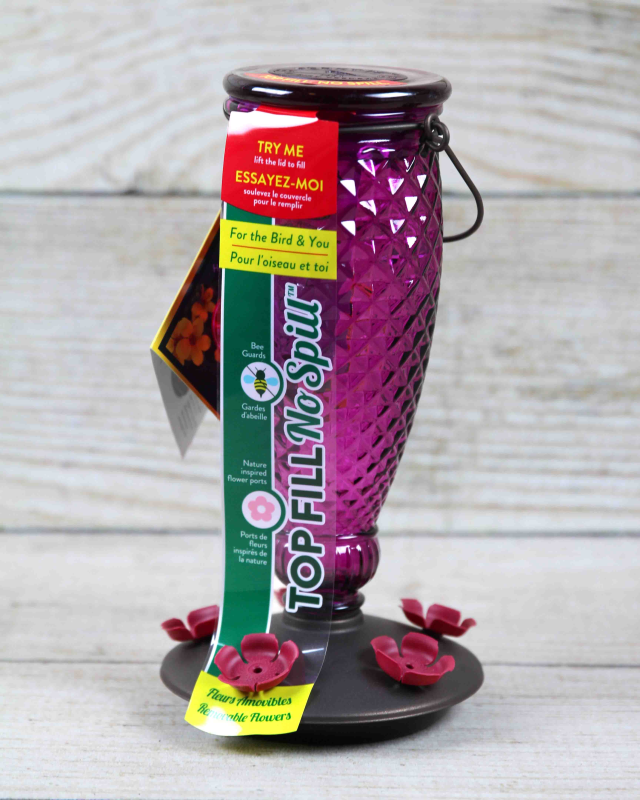 The Top-Fill feature you love with a stunning color and glass construction, the Perky-Pet Diamond Wine Top-Fill Glass Hummingbird Feeder is a favorite of birders and hummingbirds alike.